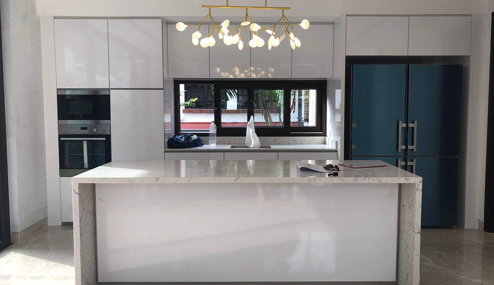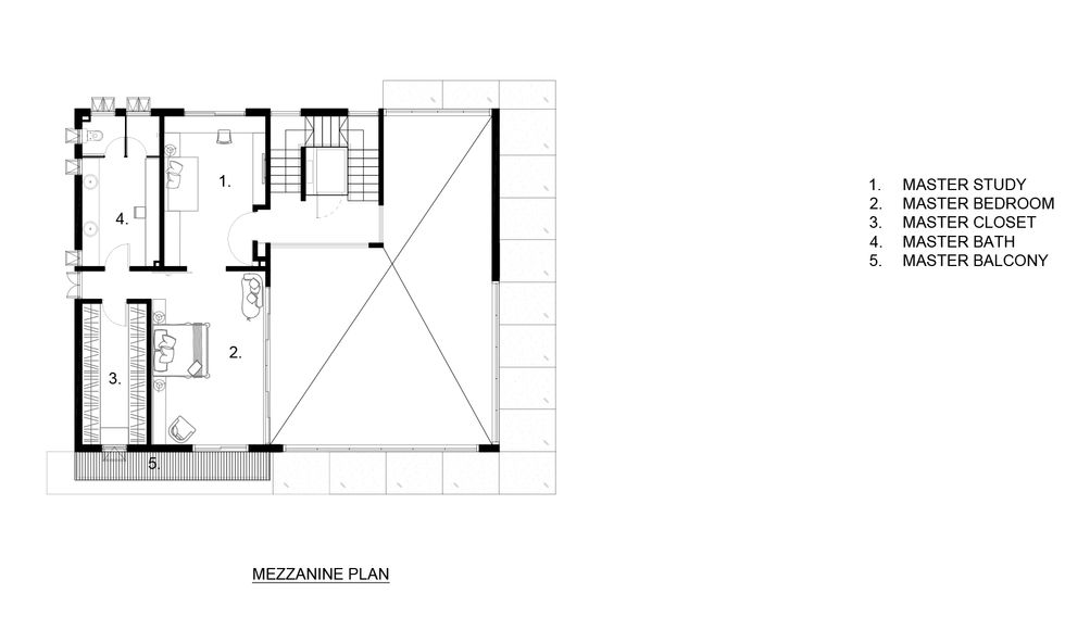 The challenge of having a mezzanine floor is low-ceiling height, and at the same time to ensure that the overall height of the house did not get any higher than what was stated in the regulation of URA (Urban Redevelopment Authority, Singapore). However, the double-volume at the living room gives a big sense of generosity and welcoming.